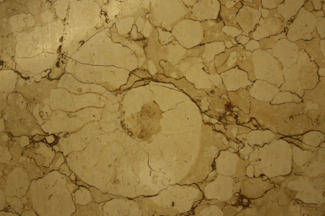 That's actually not marble; geologically speaking, it's limestone. Marble is limestone that has been compressed and heated over millions of years by geologic processes, but that destroys any fossils in the original limestone. The building trades use the term "marble" for both limestone and actual marble used in construction and interior facings, but geologically, there's a difference.