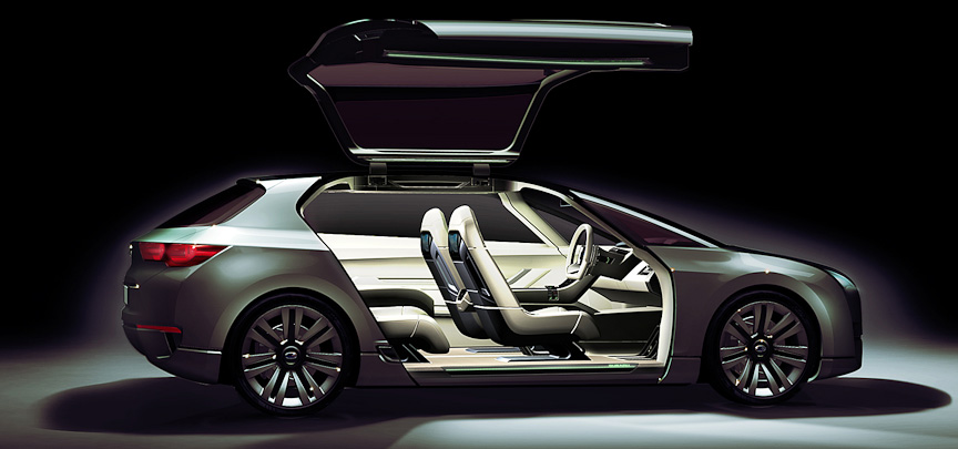 The five-door compact crossover combines sporty driving with environmental performance, and its exterior and interior are inspired by dune buggies and motorcycles.